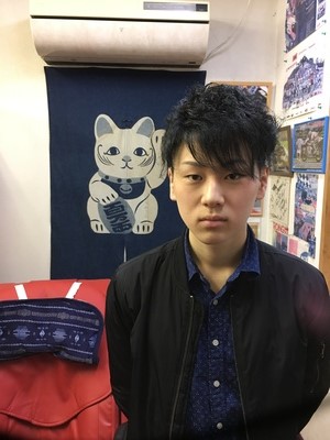 金髪をブルーブラックて染め直してわからないくらいのアシメにしました。